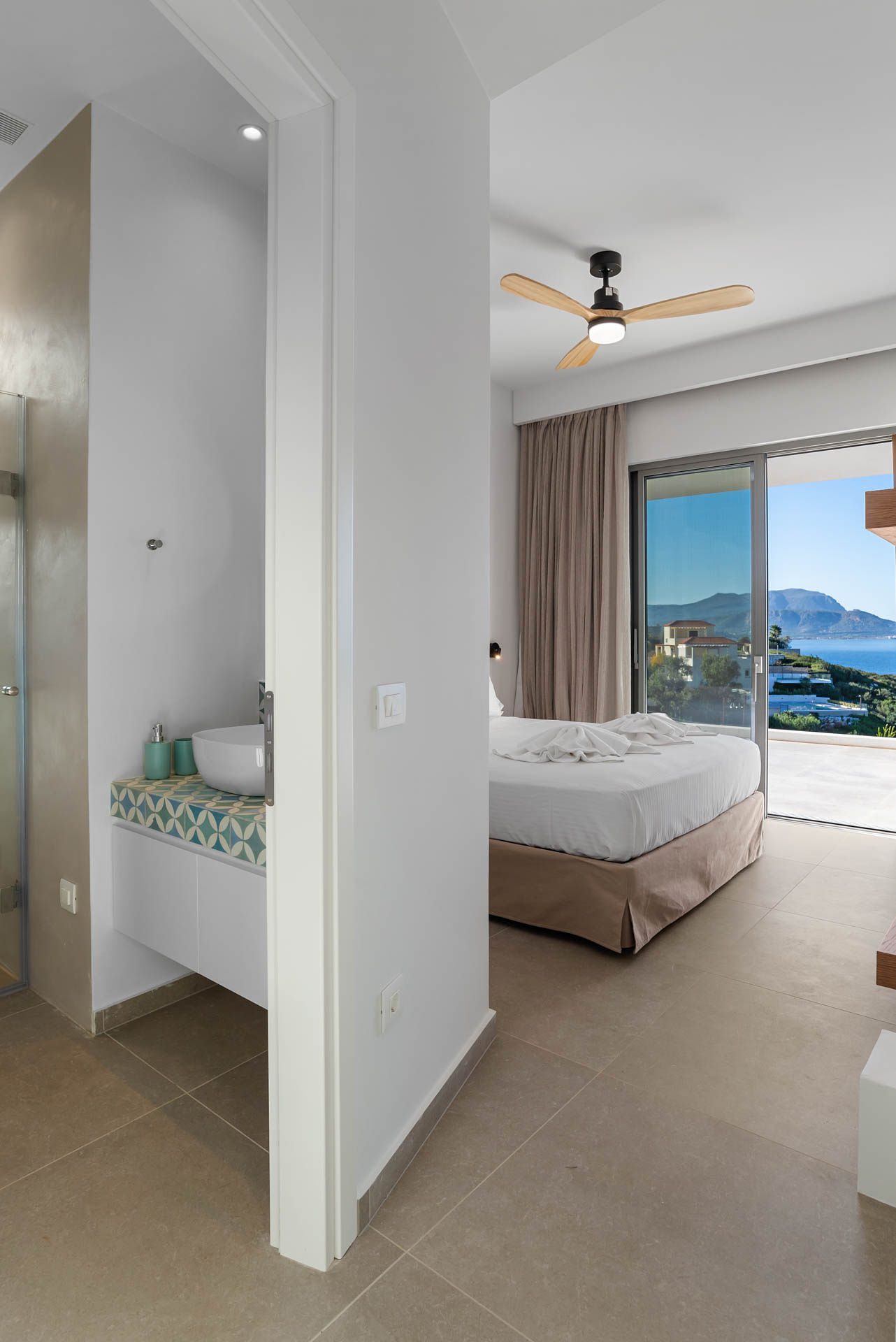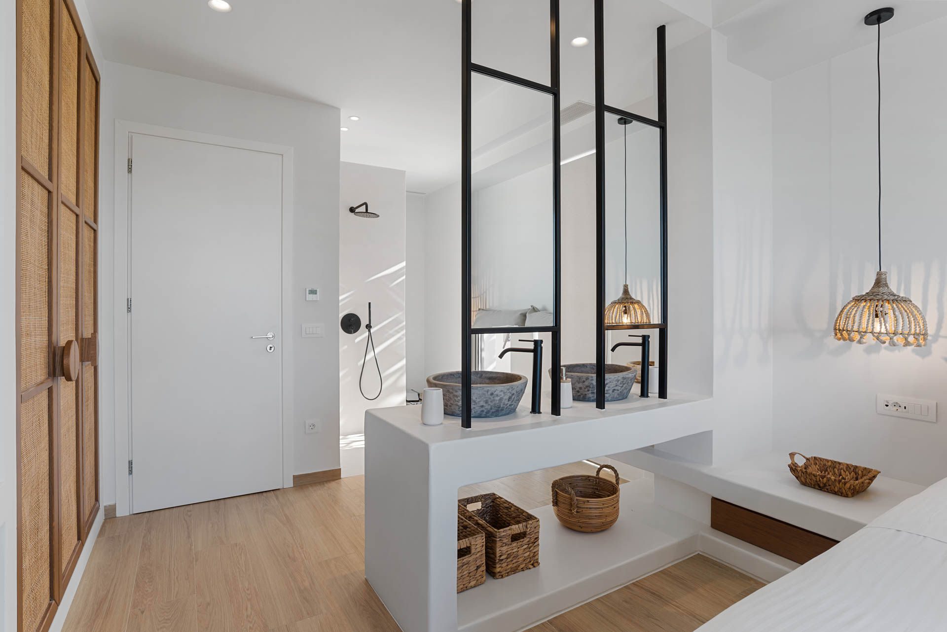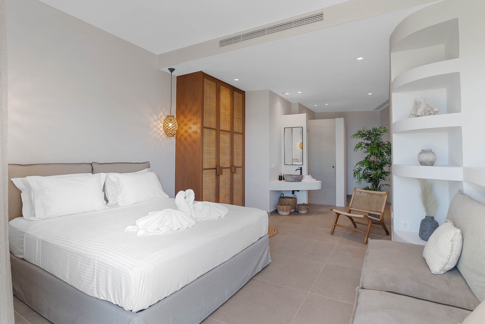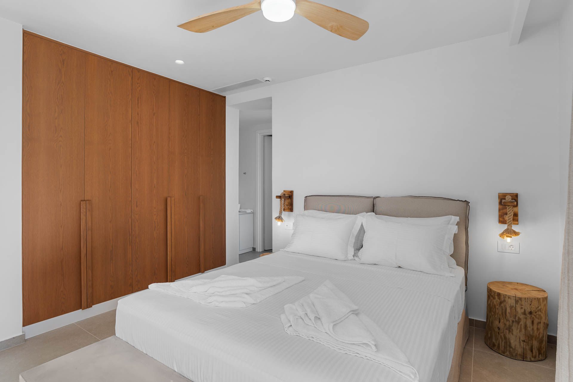Villa Eureka boasts four spacious and stylish en-suite bedrooms: The main one on the upper level, featuring a serene outdoor bathtub for ultimate relaxation.