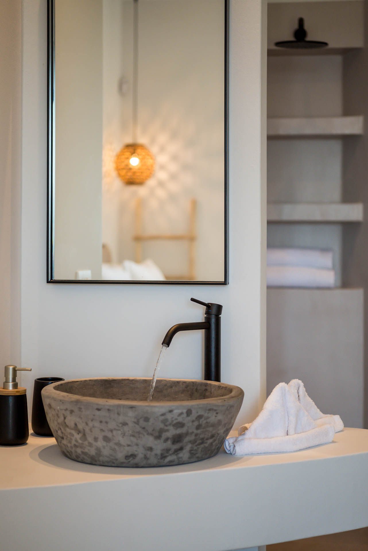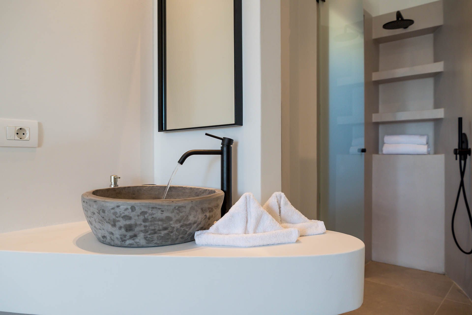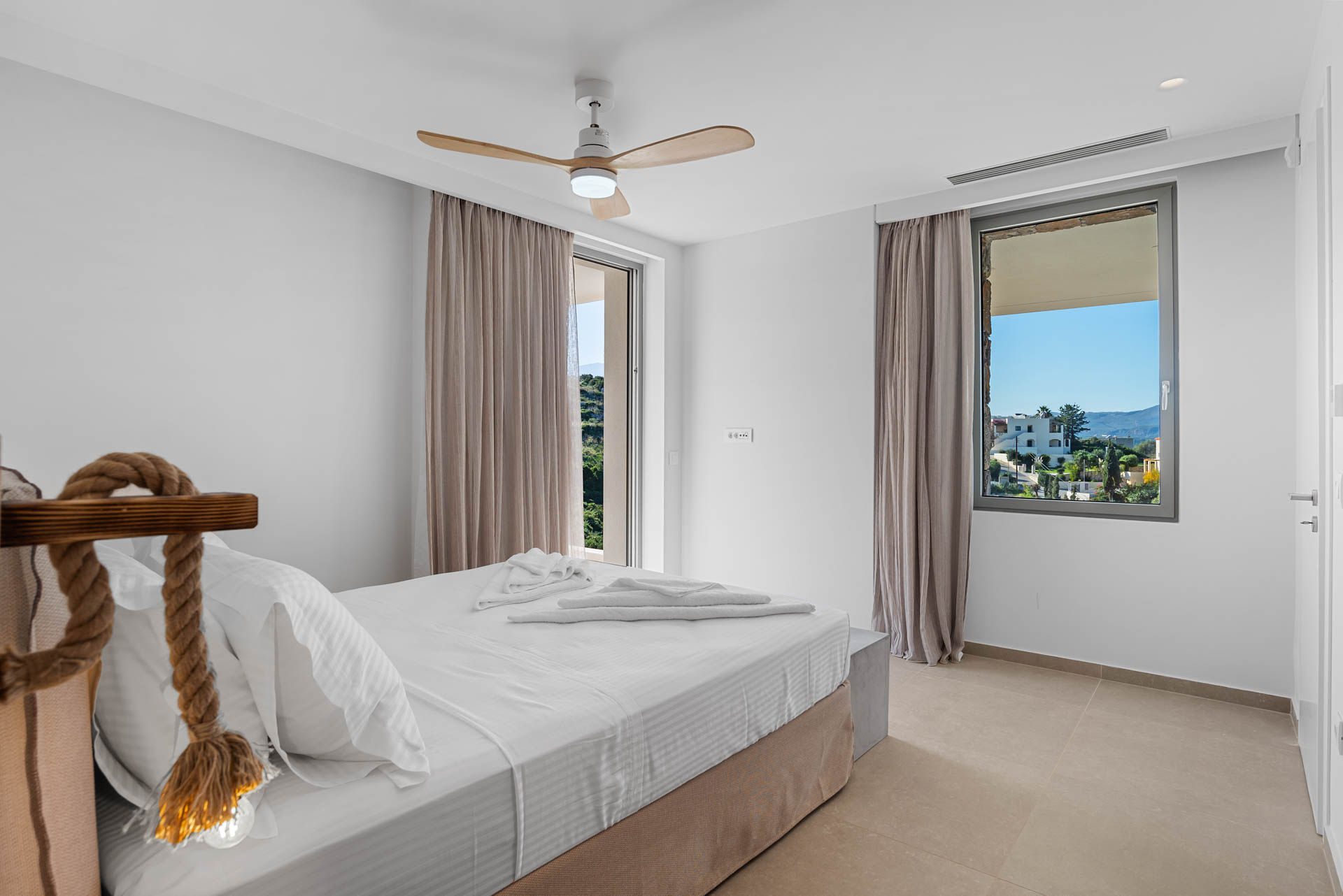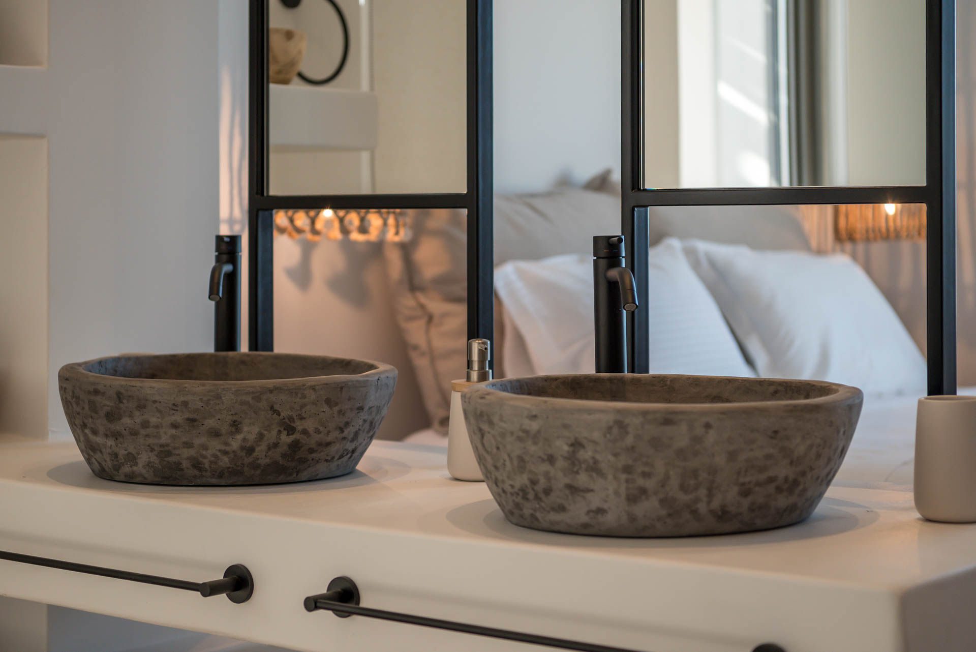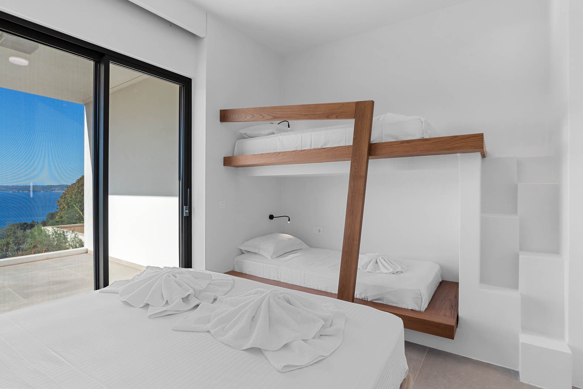 Villa Eureka boasts four spacious and stylish en-suite bedrooms: The main one on the upper level, featuring a serene outdoor bathtub for ultimate relaxation.