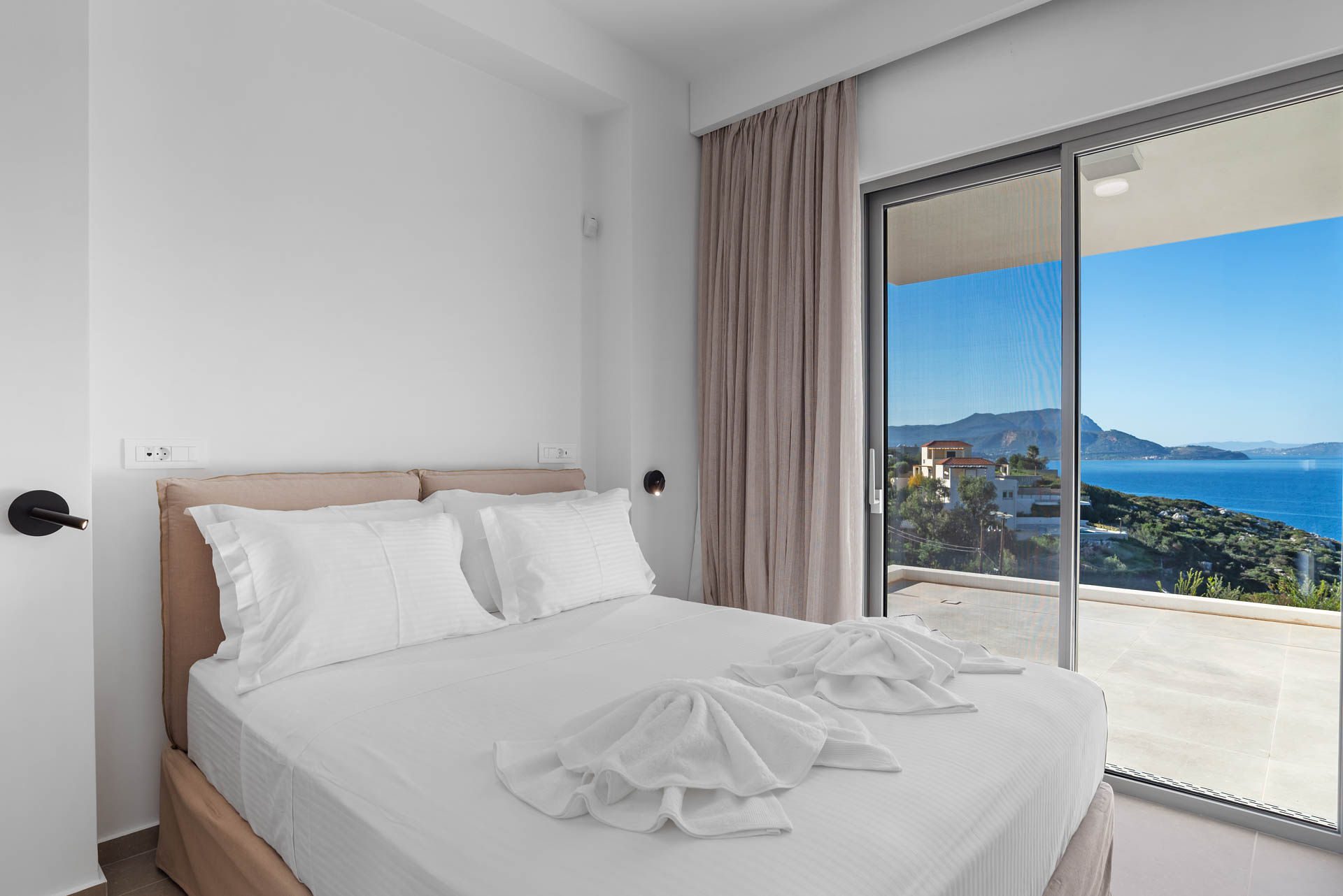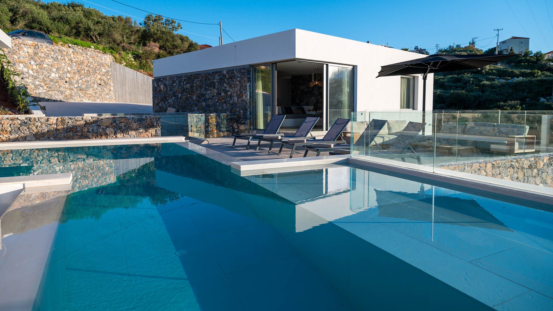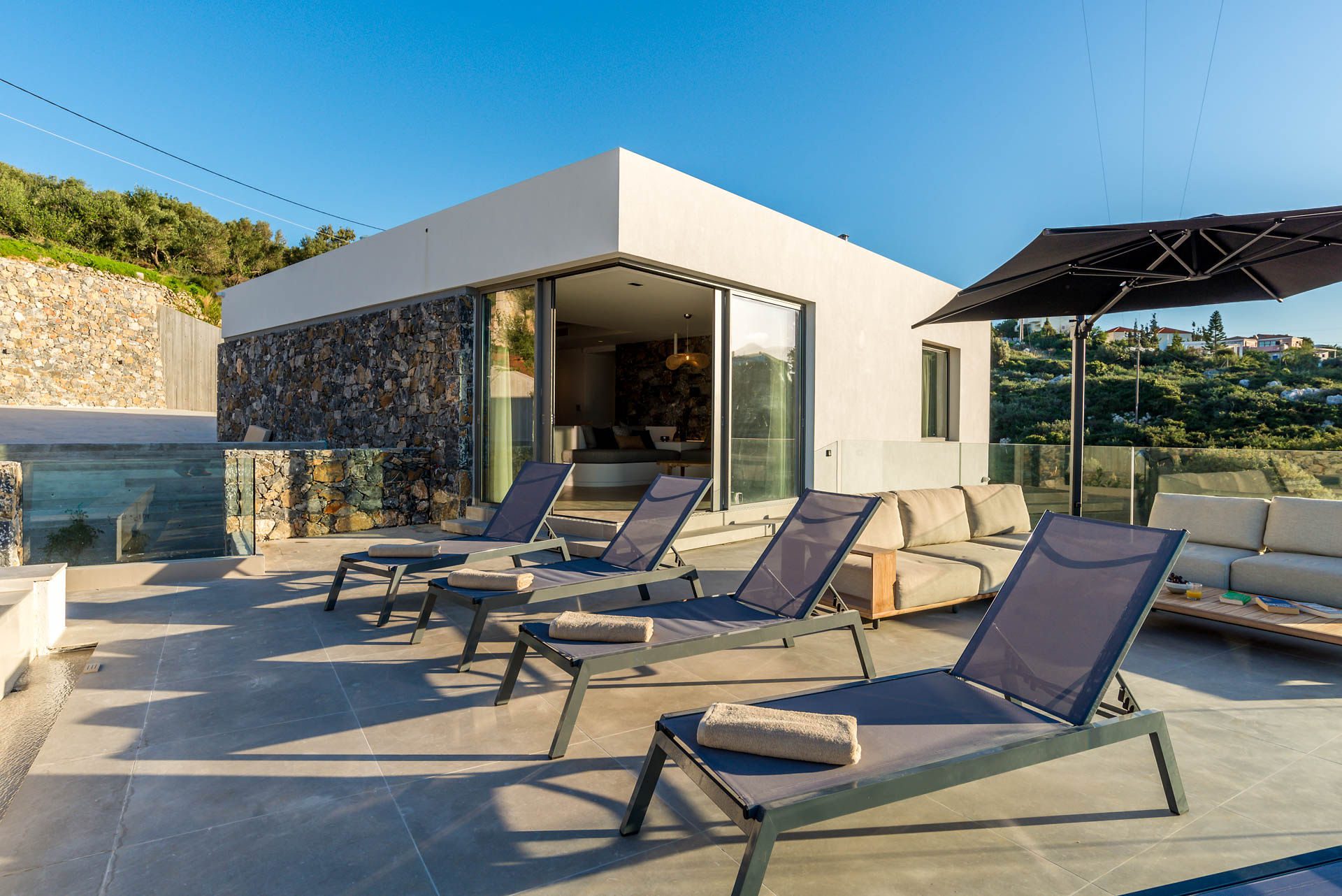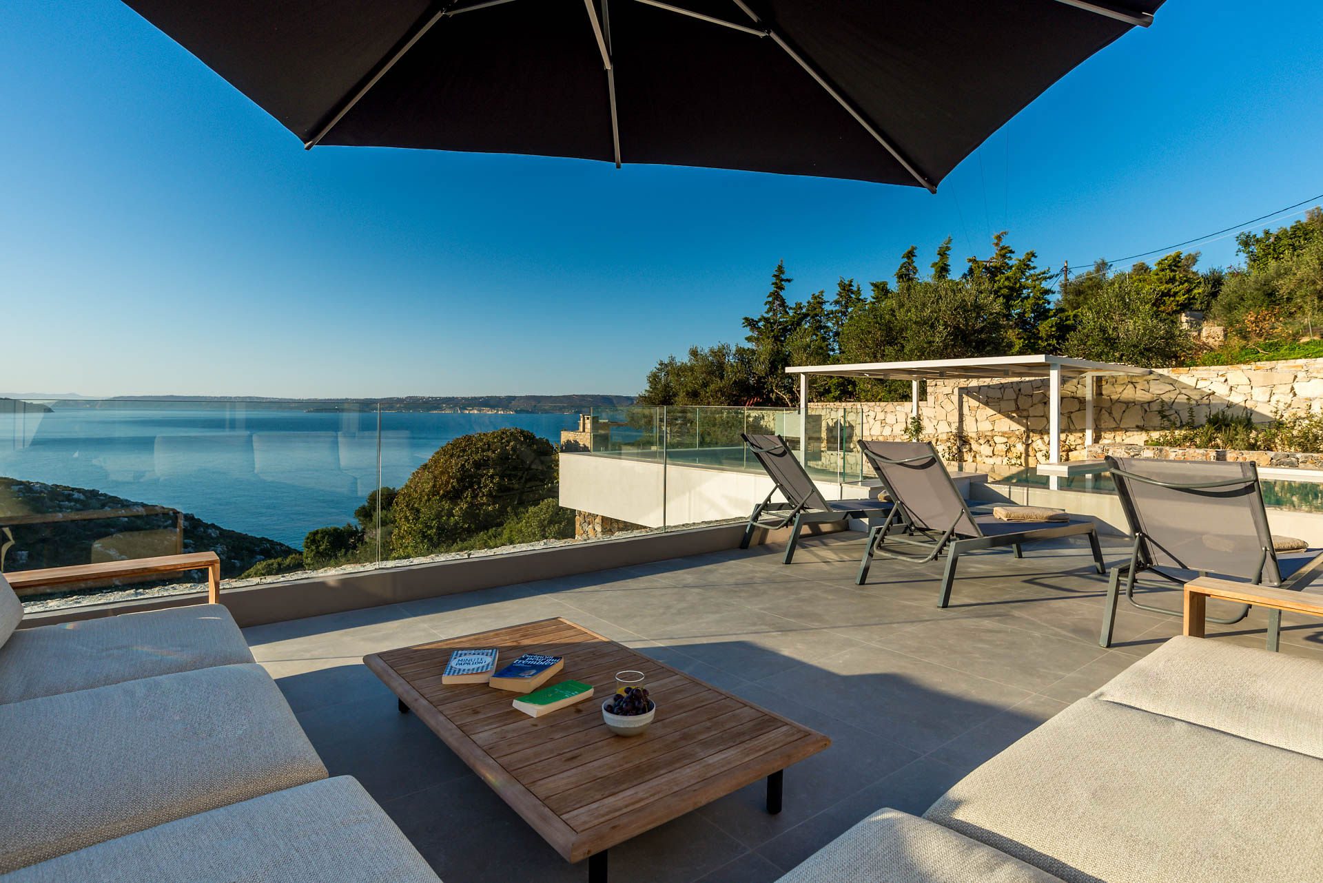 Surrounded by beautifully landscaped gardens that harmoniously combine wild and natural elements, Villa Eureka offers stunning outdoor spaces. Each bedroom opens to a private balcony with unobstructed views, while the main balcony, adjacent to the heated infinity pool (maintained at 26°C), showcases breathtaking vistas of the mountains and the sea.