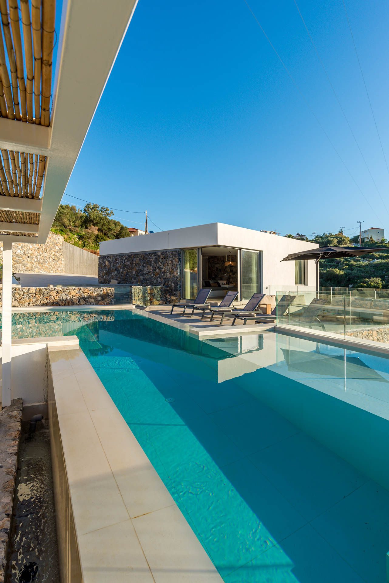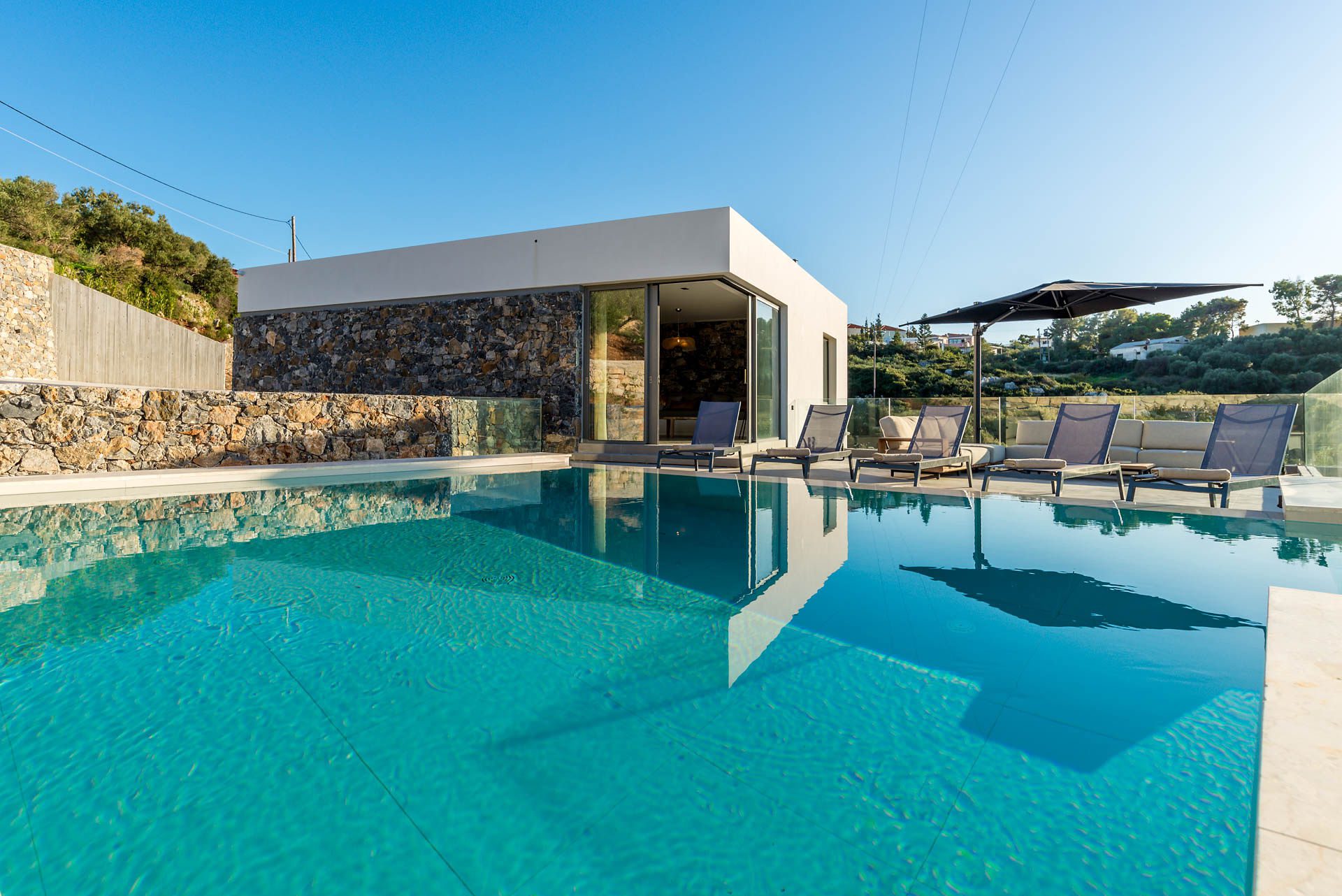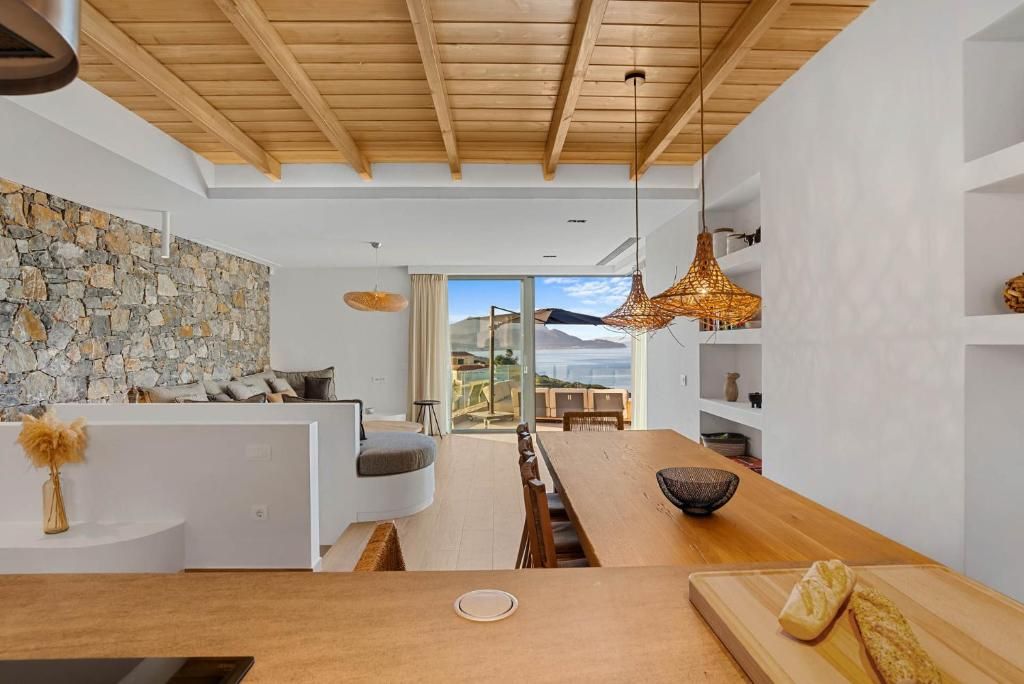 Everything – beautiful pool and such a stylish design – all natural materials and textures. Very tasteful. Loved the once a week maid service as we don’t like someone coming everyday. Michalis was so helpful but knew how to give you the space you need. The view was stunning from every room. Self catering but local supermarket only a few minutes walk stocked everything.