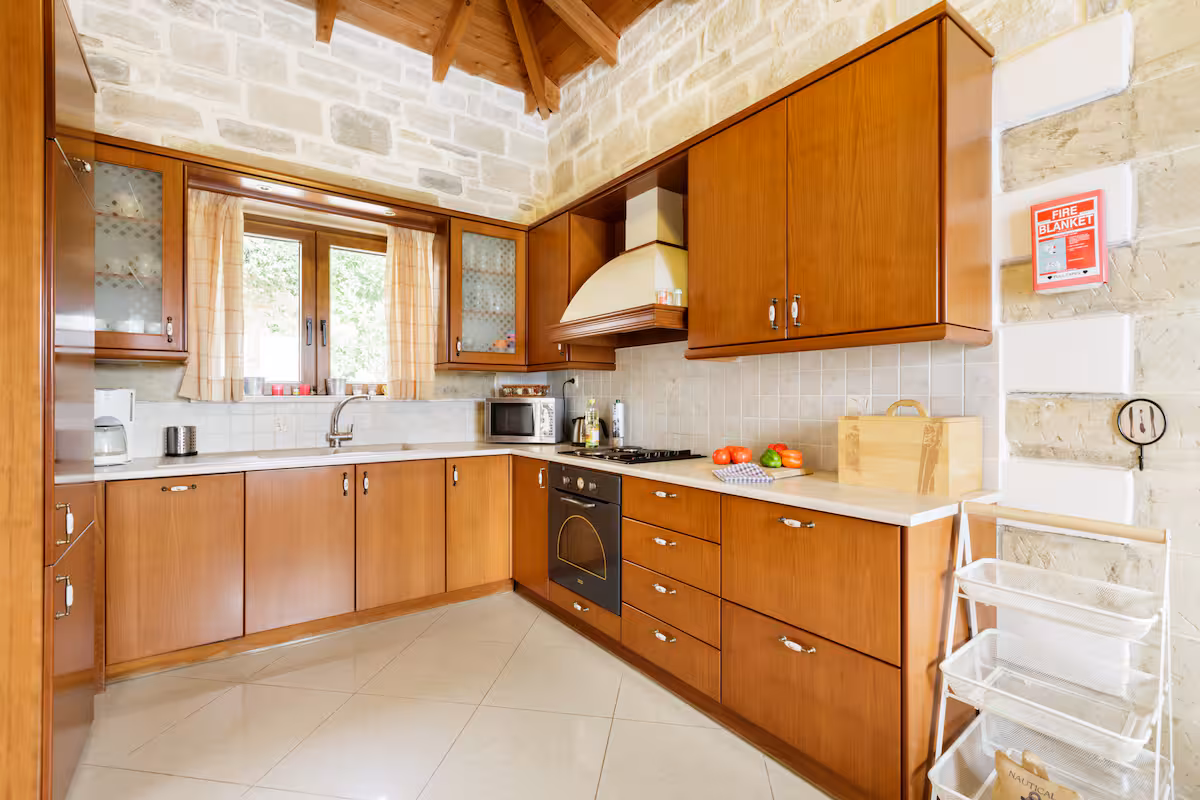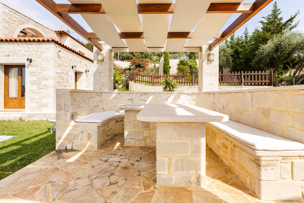 BBQ area with a traditional stone oven for pizza, stone table and benches, offers you the ideal scenery for an outdoor meal with family or friends. To fulfill the picture of an amazing dinner you have the option to hire local cooks that will prepare a traditional Cretan meal in your space.